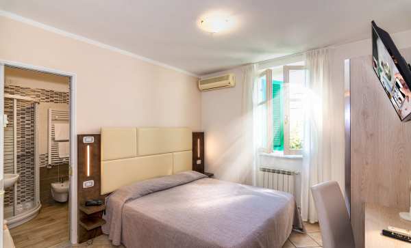 L’Hotel dispone di 10 camere spaziose, luminose e accoglienti dotate di tutti i confort: bagno privato, phon, frigobar, telefono, accesso Internet, TV-color, aria condizionata, cassetta di sicurezza.