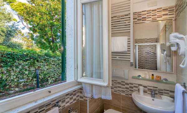 Camera situata nell'edificio della Villa con letto matrimoniale e letto singolo.