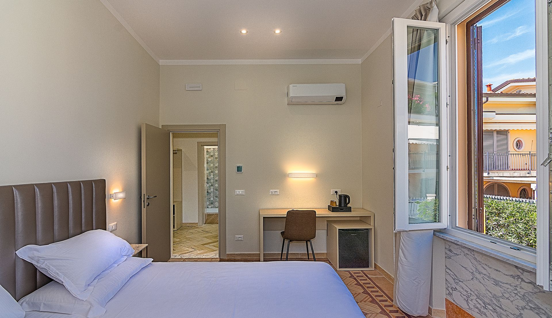 L’Hotel dispone di 6 camere spaziose, luminose e accoglienti dotate di tutti i confort: bagno privato, phon, frigobar, telefono, accesso Internet, TV-color, aria condizionata, cassetta di sicurezza.
